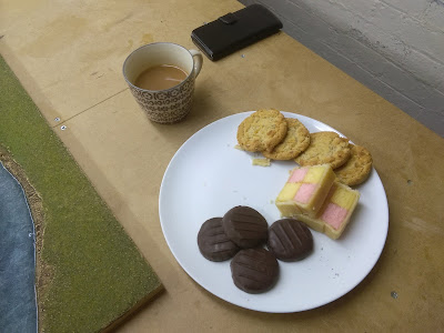 Refreshments were a joint effort on this occasion, cookies and tea from Steve, chocolate biscuits from Chris and Battenberg from me (and mainly eaten by me too)