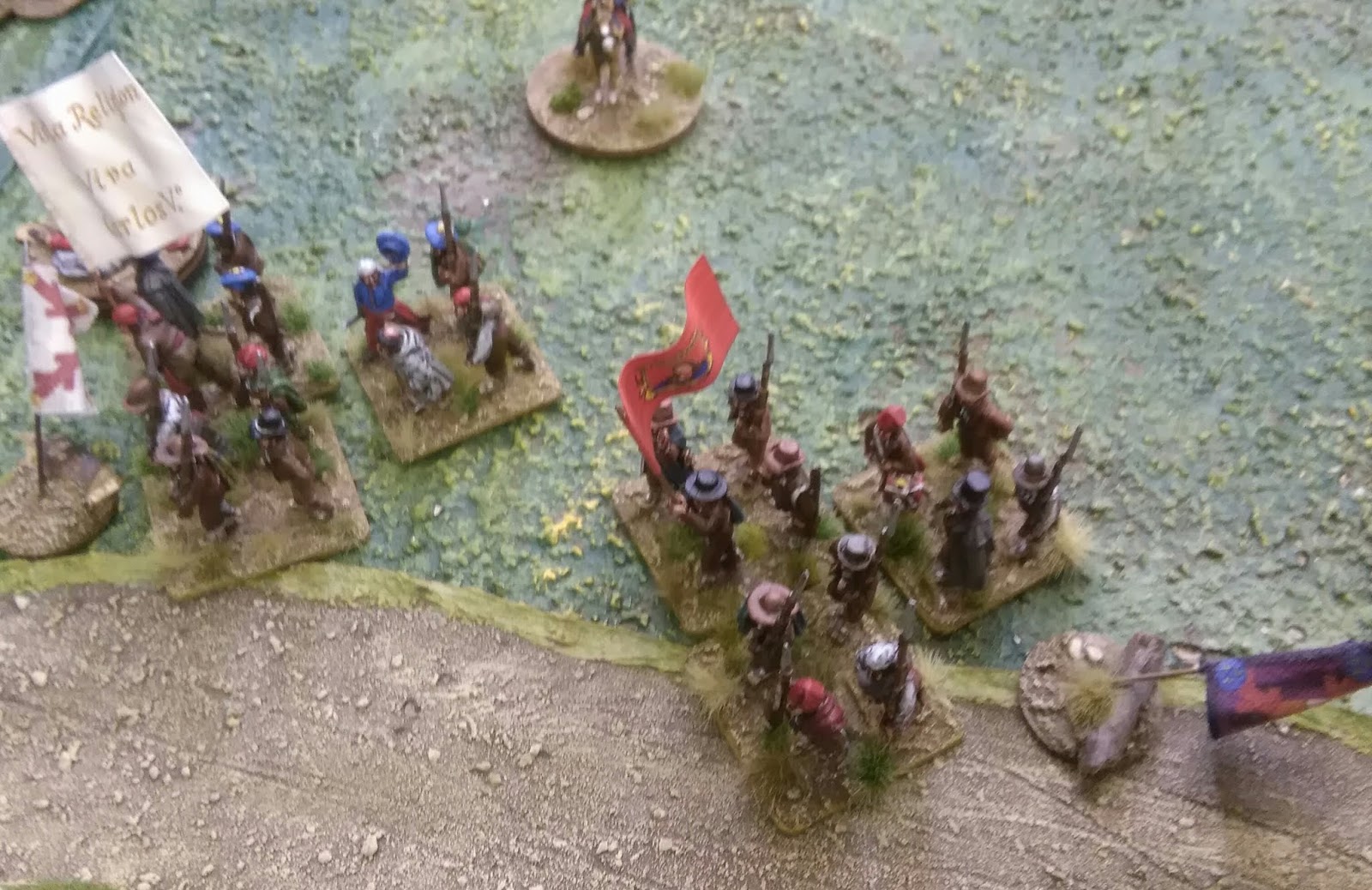 The Carlists ran a number of expeditions. These was designed to rally support and raise recruits outside of the Basque centres of operation around the rest of Spain and show the world it was not just a localised rebellion. The expeditions met with varying degrees of success. The 12,000 man Royal Expedition after bypassing Madrid was pursued by 26,000 Isableino's and caught damaging many formations which led to the battle of Aranzueque where the Carlist army narrowly escaped destruction. Our scenario is loosely based around this period. The Carlists have 7 Brigades, 2 are badly mauled with wavering troops that take a break test after each casualty, Three are still excellent and two more a bit more average.