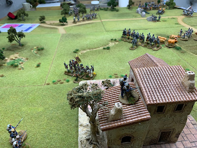 In the buildings the French skirmishers have ejected the last of the Guerillas who flee. A further round of firing into the rifles reduces the end unit from 6 to 1 man.